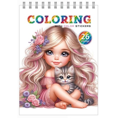 Розмальовка на 12 аркушів з наліпками на спіралі 15х21 см, ТМ Манадрин