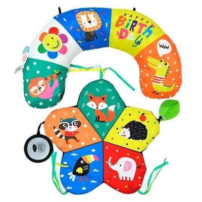 Дитяча подушка 26х36 см та килимок «Квіточка» 31х31 см двостороннній з шуршалкою, дзеркалом та прорізувачем, в асортименті, у пакеті 26х21х8 см.