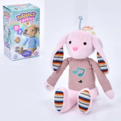 Зайчик 36 см музичний зі світлом сенсорний з українською та англійською озвучкою, на батарейках, у коробці 15х25х12 см