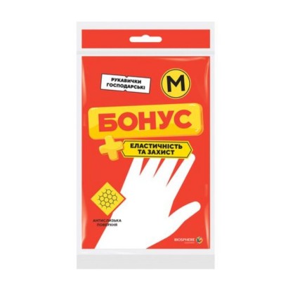 Рукавички гумові універсальні на розмір М, економ, Бонус