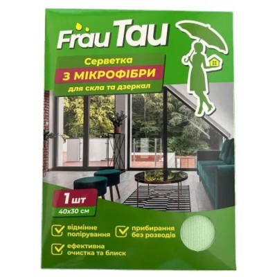 Серветка з мікрофібри для скла 30х40 см, 1 шт в упаковці, ТМ Frau Tau