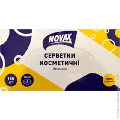 Серветки косметичні «NOVAX» 2-шарові 19х20 см по 150 шт у пеналі