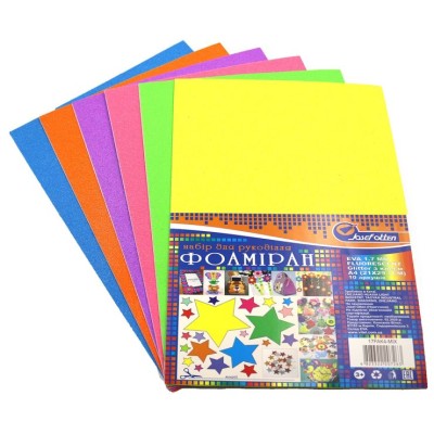 Фоаміран A4 товщиною 1,7 мм 6 аркушів флуорисцентних з глітером, різнокольоровий, ТМ J.Otten