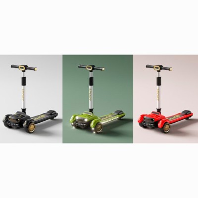 Самокат 3-колісний музичний зі світлом на металевій рамі, колеса ПУ, 2 передні 110 мм, заднє 80 мм, кермо 70-84 см, складаний, в асортименті, у коробці 63х36х19 см.