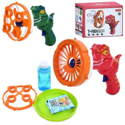 Мильні бульбашки «Динозавр» з вентилятором, 2 насадками, запаскою 10,5 см, на батарейці, у коробці 20х14,5х13 см