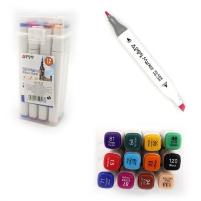 Набір скетч маркерів на 12 кольорів двосторонніх зі кругл/скошеним наконечником, у пластиковому футлярі, ТМ J.Otten