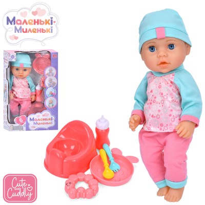 Пупс 37 см з пляшечкою, посудом, брязкальцем, п`є, пісяє, у коробці 23,5х40х11 см