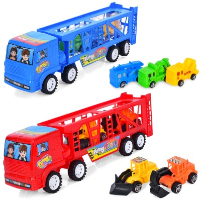 Трейлер 29 см інерційний з 2 машинками 6-8 см, в асортименті, у пакеті 35х16х7 см