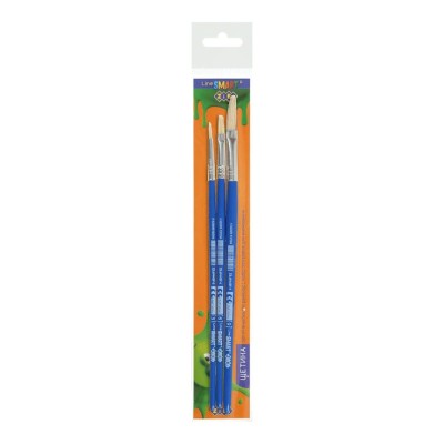Набір з 3-х пензлів: щетина кругла 3, пласка 6, 9, ТМ Zibi