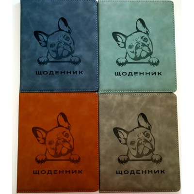 Щоденник шкільний «Песик» А5 з обкладинкою зі шкірзаму, в асортименті
