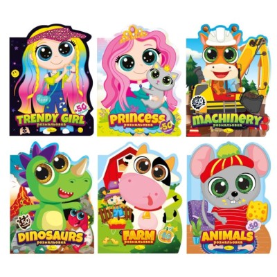 Розмальовка «Миласики» та 50 наліпок на 14 аркушів з м`якою обкладинкою 21х28 см, в асортименті, ТМ Апельсин