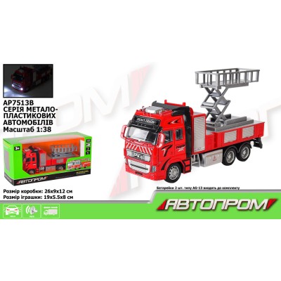 Машина «Пожежна охорона» 1:38 металевий зі світлом та звуком, на батарейці, у коробці 25,5х12х9 см, Автопром