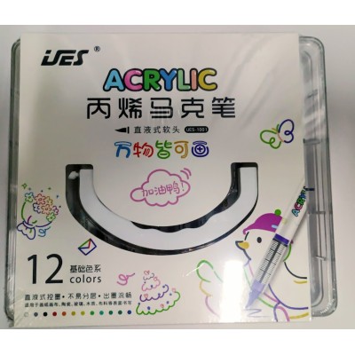 Набір акрилових маркерів на 12 кольорів, у пластиковій коробці