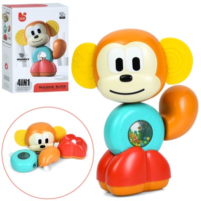 Брязкальце «Мавпочка» 18 см 4 в 1: конструктор, прорізувач, пищалка та текстурні деталі, у коробці 14х20,5х7 см