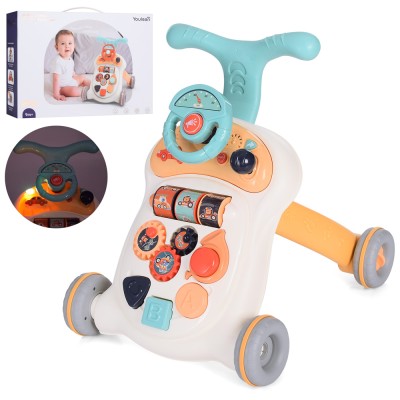 Ходунки-каталка 42х45х47 см музічні зі світлом, кермом, шестернями та сортером, на батарейці, у коробці 55х38х14 см.