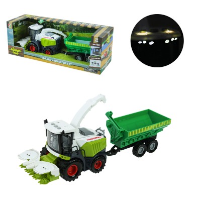 Комбайн з причепом зі світлом та звуком, на батарейках, у коробці 40х14,5х13 см