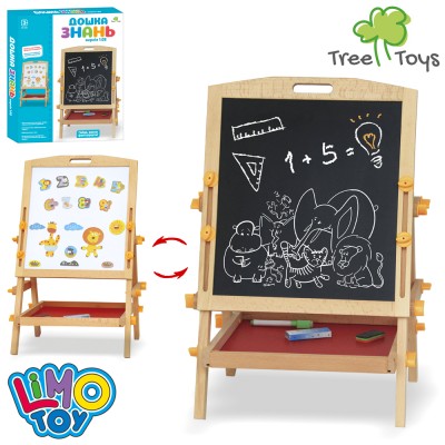 Мольберт 34х38 см дерев`яний двосторонній з маркером, крейдою та губкою, у коробці 39х45х5 см