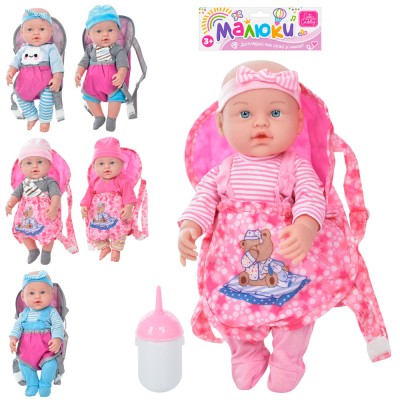 Пупс 36 см зі звуком, пляшечкою, сумкою-кенгуру, на батарейці, в асортименті, у пакеті 19х46х9 см