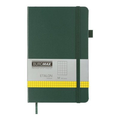 Блокнот «ETALON» 12,5х19,5 см на 96 аркушів у клітинку з обкладинкою зі шкірзаму, зелений, ТМ Buromax