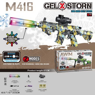 Іграшковий автомат на акумуляторі зі світлом стріляє гелевими кулями, у коробці 43,5х23,5х7 см