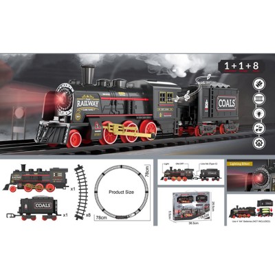 Залізниця 78х78 см зі світлом та звуком: локомотив та вагон, на батарейці, у коробці 36,5х26,5х5,5 см