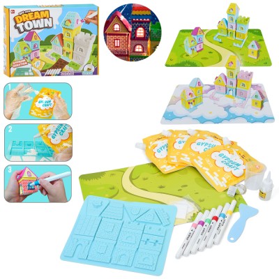 Набір для творчості «Місто мрій. Побудуй будинок» зі світлом: гіпс, формочки, 6 маркерів, інструменти та ігрове поле, на батарейці, у коробці 26х21х7 см