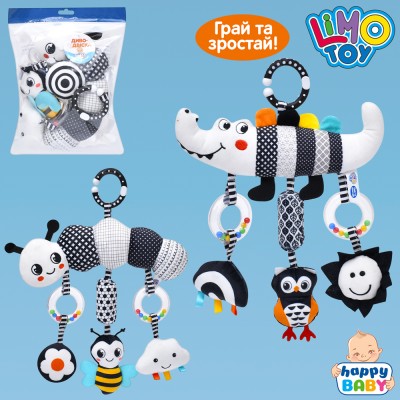 Підвіска м'яка 35 см зі звуком та пищалкою, плюшева, в асортименті, у пакеті 18х25х5 см