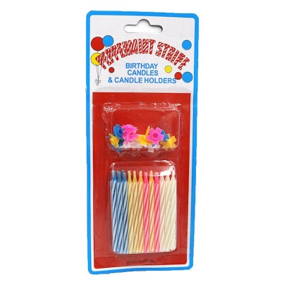 Набір свічок для торта «З Днем Народження» з 24 штук по 0,3х5,3 см та 12 підставок