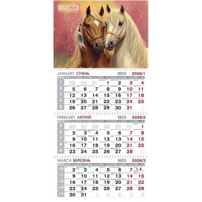 Календар квартальний «Рік Коня» 30х65 см на 3 пружини, ТМ Buromax