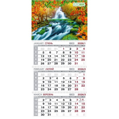Календар квартальний «Водоспад» 30х65 см на 3 пружини, ТМ Buromax