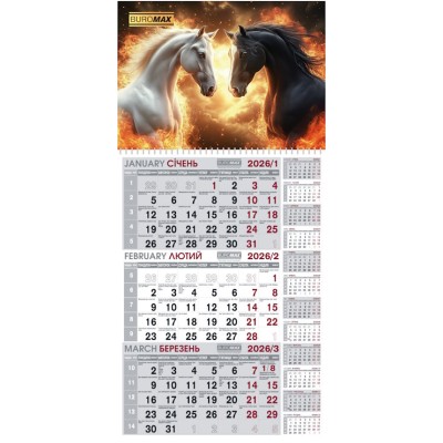 Календар квартальний «Кінь» 30х63 см на 1 пружину, ТМ Buromax