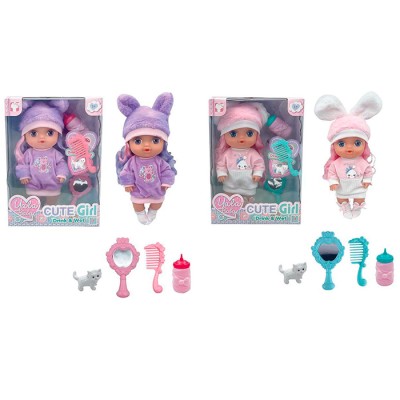Пупс 30 см п'є-писяє з пляшечкою, гребінецам, дзеркалом та котиком, в асортименті, у коробці 23,5х32,5х10,5 см