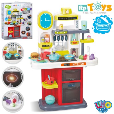 Дитяча кухня 51х20х76 см на 45 елементів зі звуком та світлом: плита з паром, духовка, мийка з водою, посуд, продукти, на батарейці, у коробці 42х53