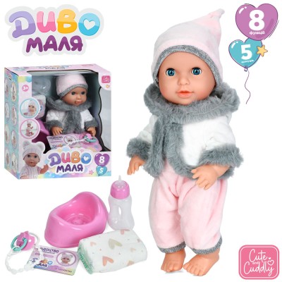 Пупс 30 см сенсорний п'є-писяє, зі звуком, підгузком, горщиком, пляшечкою, соскою, на батарейках, у коробці 26,5х29х14,5 см.