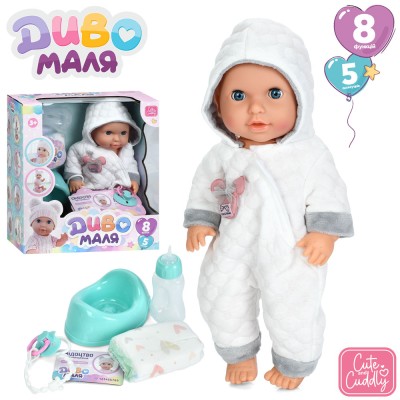 Пупс 30 см сенсорний п'є-писяє, зі звуком, підгузком, горщиком, пляшечкою, соскою, на батарейках, у коробці 26,5х29х14,5 см.
