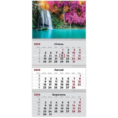 Календар квартальний «Водоспади 1» 2026 рік, на 3 пружини