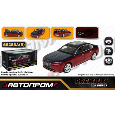Машина «BMW I7» металева 1:24 зі світлом, звуком та дверима що відчиняютьсяі, на батарейці, у коробці 24,5х12 см, Автопром
