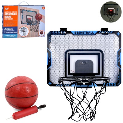 Набір баскетбольний зі світлом та звуком: металеве кыльце 25 см з сіткою, щит 40х30 см, електронний лічильник, таймер, м'яч, насос, на батарейці, у коробці 31х41х5 см