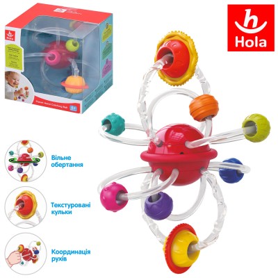 Брязкальце «Планети у долонці» 14 см з рухомими та текстурними деталями, тріскачкою, у коробці 12,5х12,5х12,5 см