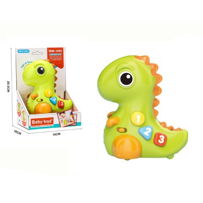 Динозавр 15 см музичний зі звуком, світлом та колесами, на батарейці, в асортименті, у коробці 14х20,5х10 см.