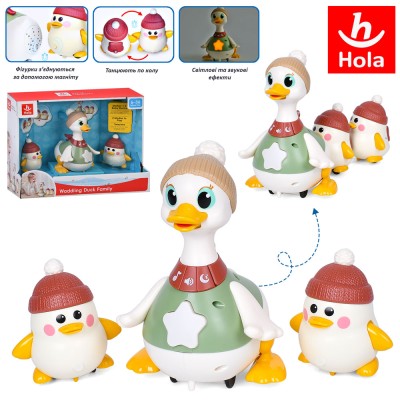 Гуси музичні: гуска 18 см та гусеня 10 см з музикою, світлом та рухомими деталями, на батарейці, у коробці 25х24х13,5 см