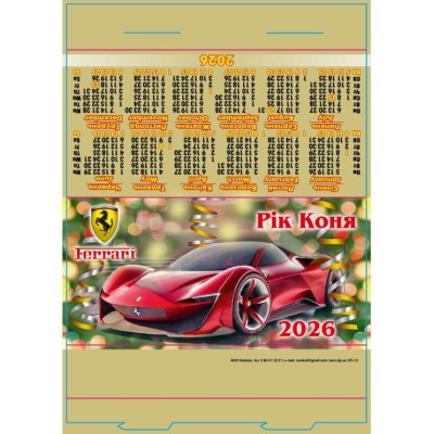 Календар-стійка «Феррарі» 29,5х21 см