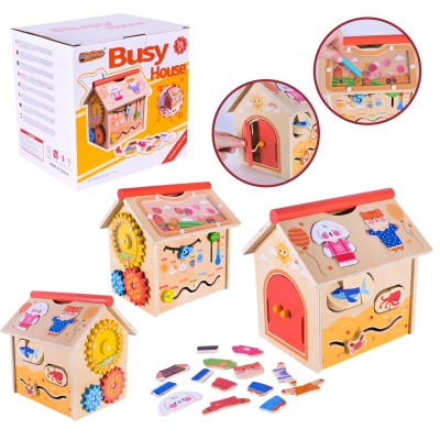 Бізіборд «Будиночок» дерев'яний з рухомими деталями, у коробці 21х17,5х21 см