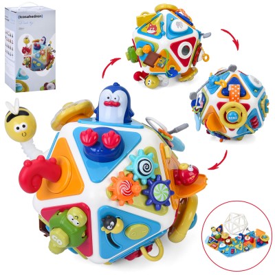 Сортер «Багатогранник» 20х20х19 см зі звуком та світлом: бізікуб, бізібол, пазл, конструктор, шестерні, кермо-пискавка, дзеркало, кодовий замок, у коробці