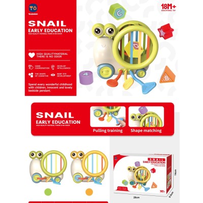 Сортер-каталка «Равлик» 16 см на колесах з 5 фігурками, рухомими та текстурними деталями, в асортименті, у коробці 20х14х9,5 см.