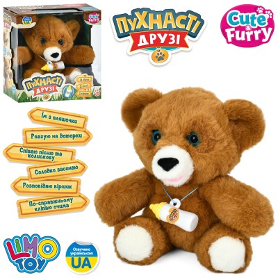 Ведмедик 24 см музичний з українською озвучкою, сенсорний, спить, реагує на пляшечку, плюшевий, на батарейці, у коробці 22х22,5х13,5 см