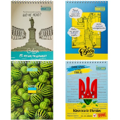 Блокнот «Героїчні міста» А5 на 48 аркушів у клітинку на спіралі зверху з картонною обкладинкою, в асортименті, TM Buromax