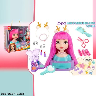 Манекен для зачісок з аксесуарами для волосся, тінями, помадою, дзеркальцем, у коробці 28х28х16,5 см