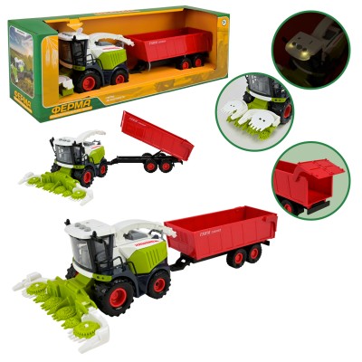 Комбайн з причепом, світлом та звуком, на батарейці, у коробці 43,5х13х14,5 см