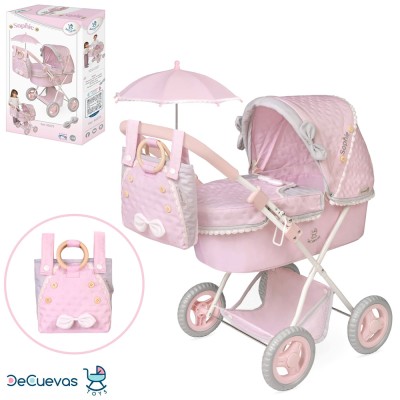 Коляска для ляльки 38х65х64 см металева класична з кошиком, сумкою, парасолькою, висота до ручки 60 см, у коробці 33,5х53х11,5 см
